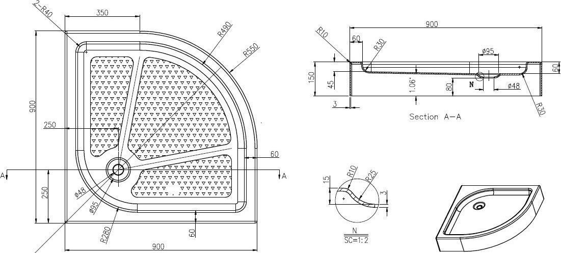 Характеристики Поддон Azario (P29 R/L)