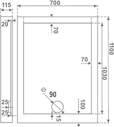 Акриловый поддон Bas Олимпик, размер 1100х700 мм, диаметр слива 90 мм, цвет белый.