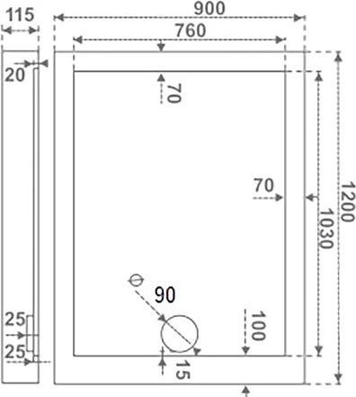 Акриловый поддон Bas Олимпик, размер 1200х900 мм, диаметр слива 90 мм, цвет белый.