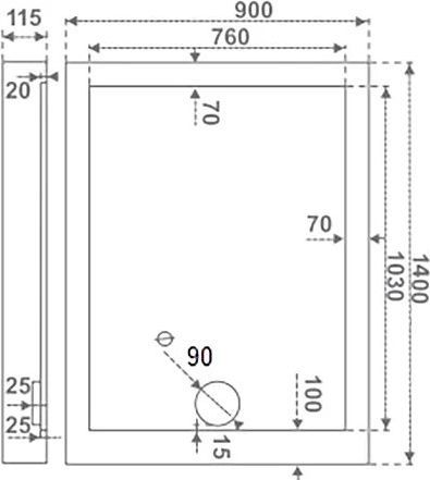 Акриловый поддон Bas Олимпик, размер 1400х900 мм, диаметр слива 90 мм, цвет белый.