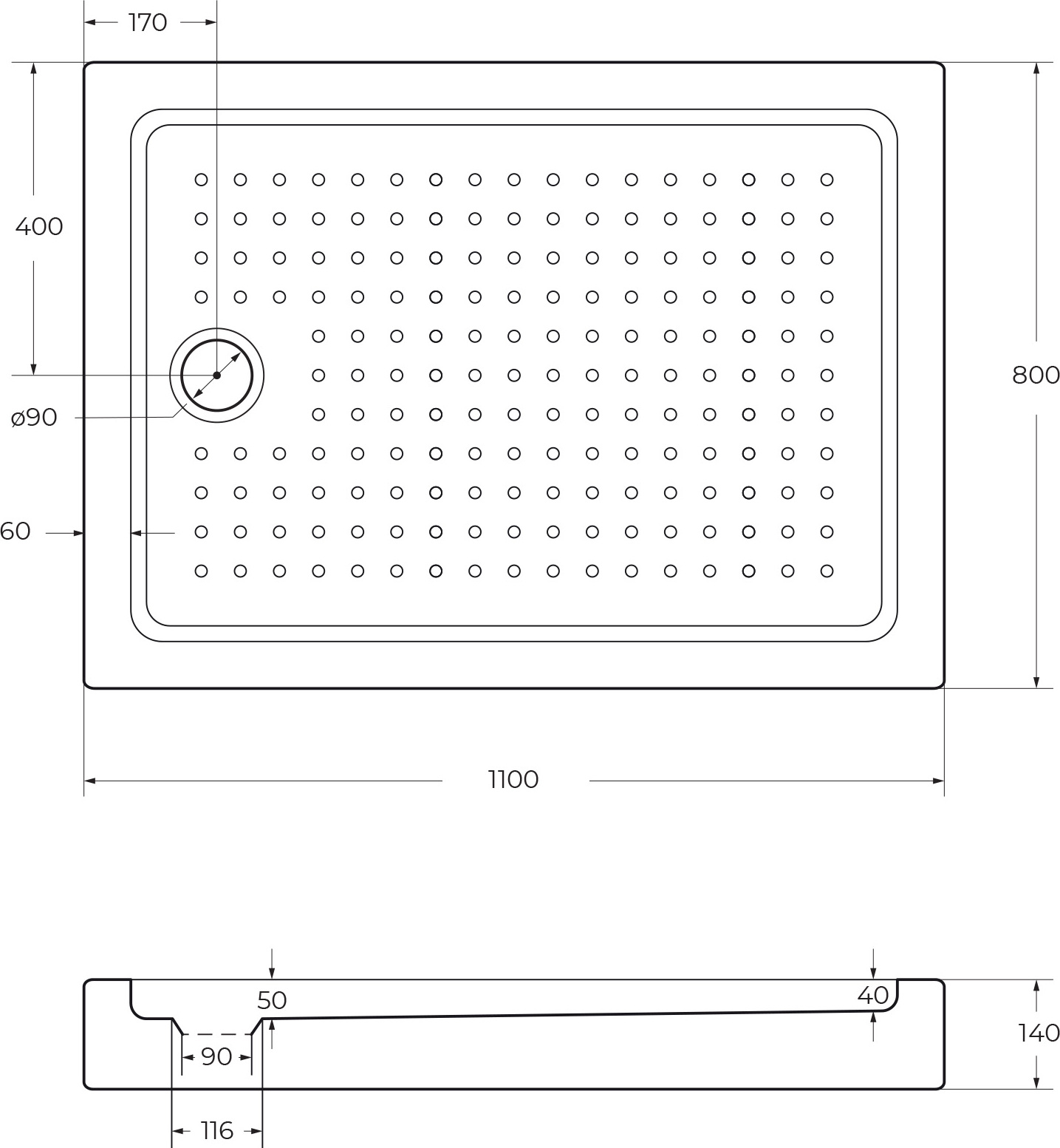 Характеристики Поддон Cezares (TRAY-A-AH-110/80-15-W)