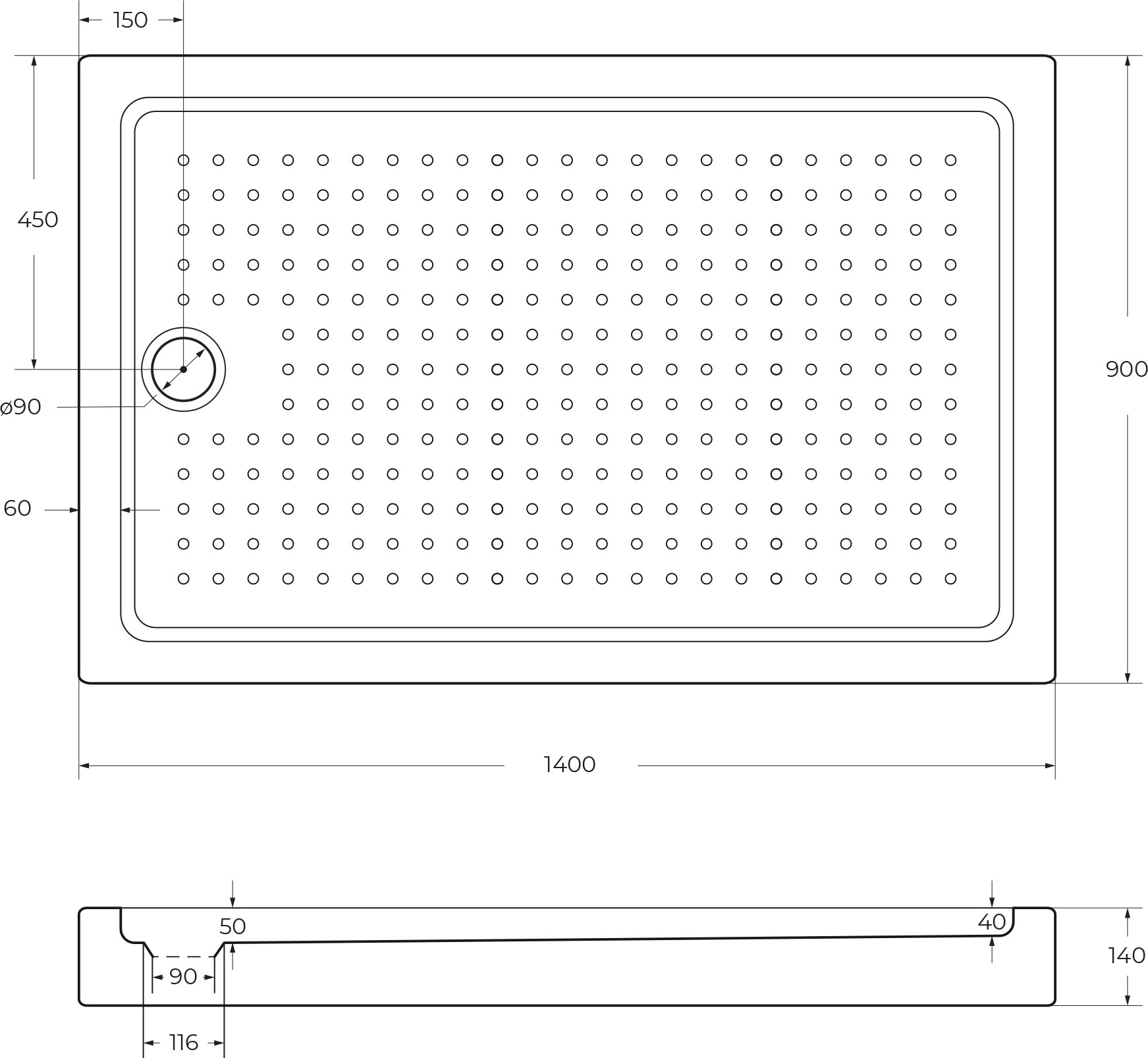 Описание Поддон Cezares TRAY-A-AH-140/90-15-W
