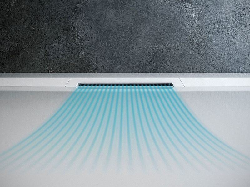 - Современный дизайн душевых поддонов. Высота сокращена до 26 мм. Нет неэстетичной круглой крышки слива – вместо нее практически незаметное отверстие щелевидной формы одного цвета с поддоном. Лаконичный дизайн со встроенной заглушкой слива делает душевую зону плоской и гладкой.