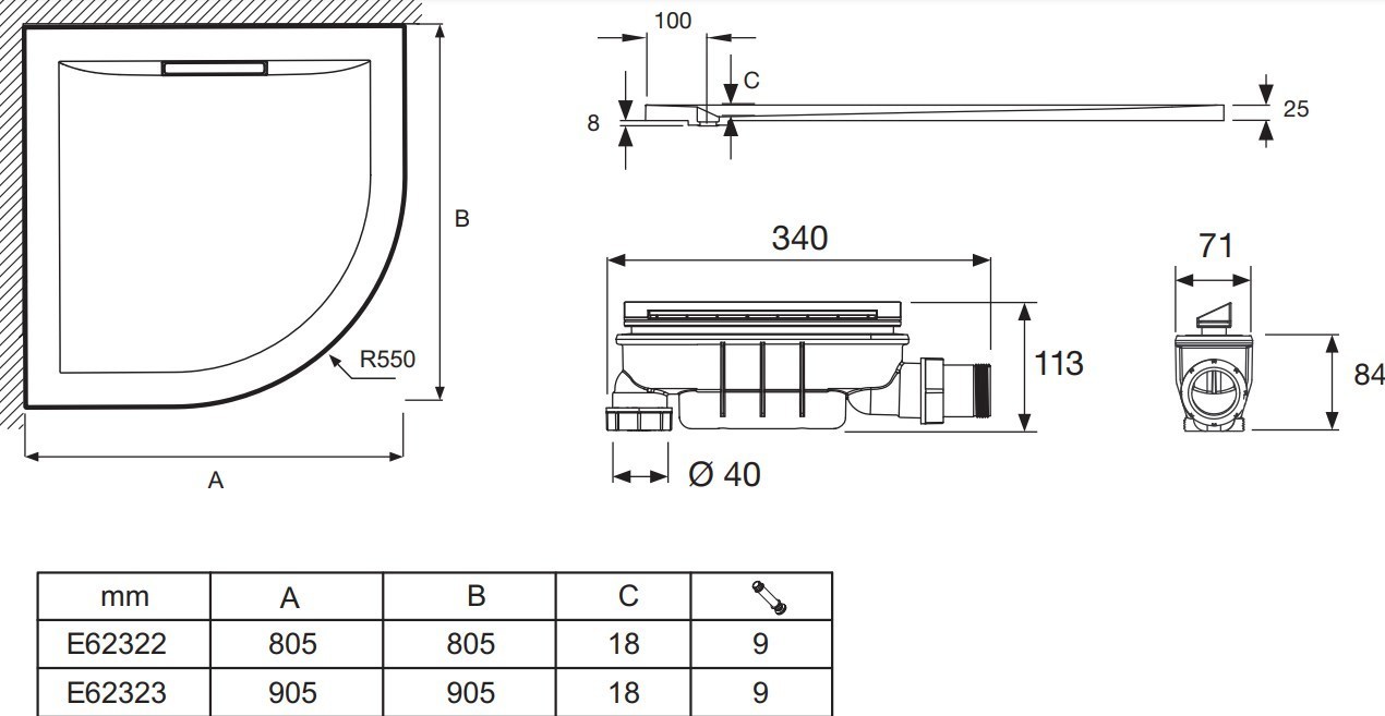 - Ультратонкий слив высотой 50 мм в комплекте. Слив в канализацию может быть установлен как вертикально, так и горизонтально. Слив со специальным съемным фильтром для волос для легкой очистки. Расположен в центре широкой стороны, что ограничило уклон слива.
