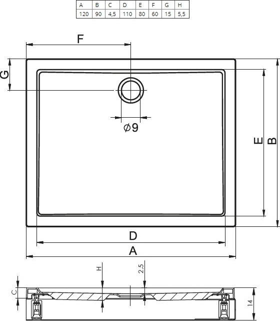 Акриловый поддон Riho Davos 255 120х90 см D002008005