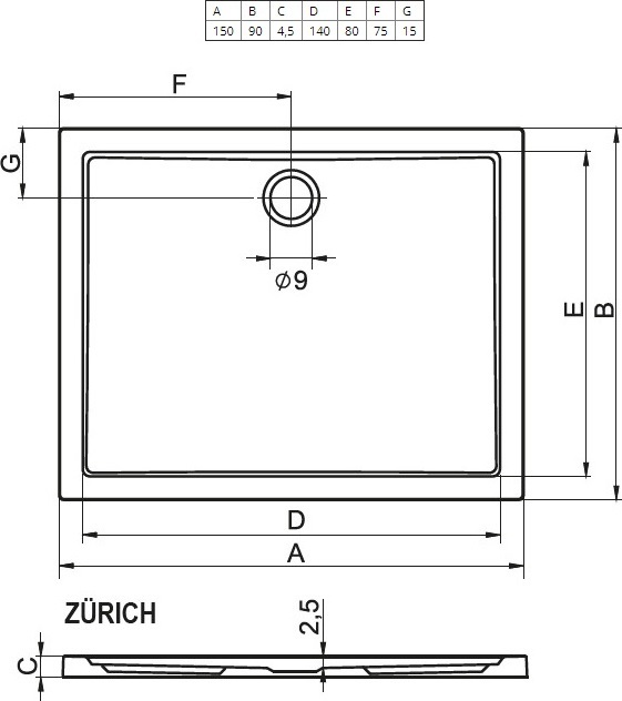 Акриловый поддон Riho Zurich 264 1500x900x45 мм. Цвет - белый, материал - акрил, прямоугольный.