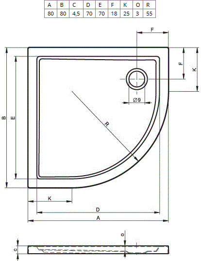 Акриловый поддон Riho Zurich 278 800x800x45 мм. Цвет - белый, материал - акрил, полукруглый.