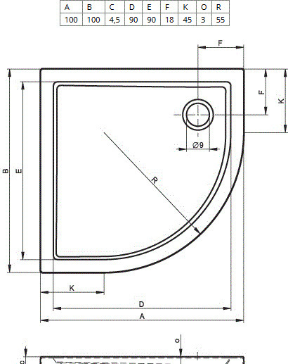 Акриловый поддон Riho Zurich 284 1000x1000x45 мм. Цвет - белый, материал - акрил, полукруглый.