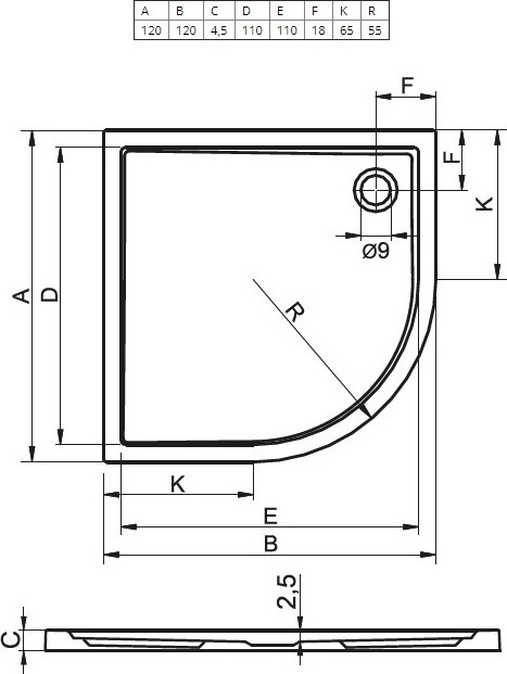 Акриловый поддон Riho Zurich 288 1200x1200x45 мм. Цвет - белый, материал - акрил, полукруглый.