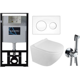 Инсталляция с подвесным унитазом комплект: Azario AZ-8010-1000 с подвесным безободковым унитазом Grado AZ-0046N сиденье микролифт, кнопка смыва белая + набор для гигиенического душа Haiba HB5511 - фото