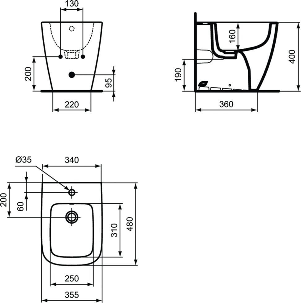 Биде напольное Ideal Standard i.Life S T459501 с отверстием под смеситель и крепежом, цвет белый.