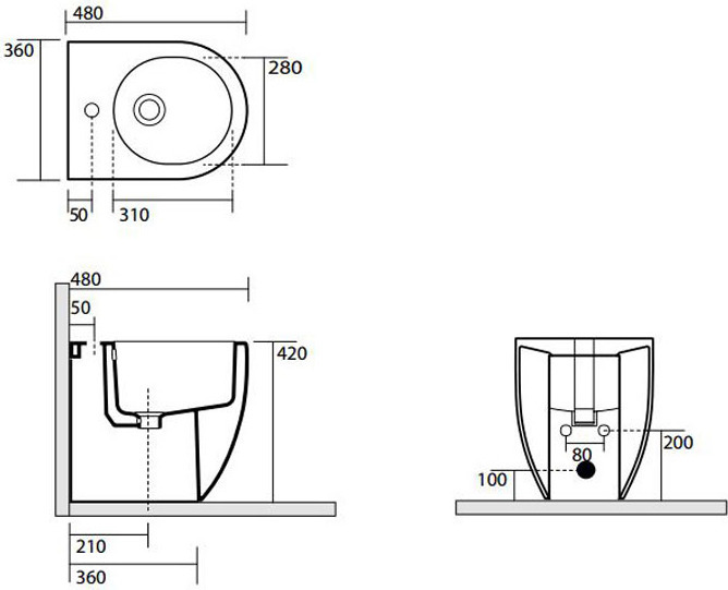 Биде напольное Kerasan Flo 312101*1, глубина 480 мм