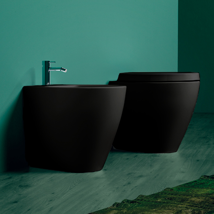 Биде напольное Simas Lft Spazio с креплением, цвет чёрный.