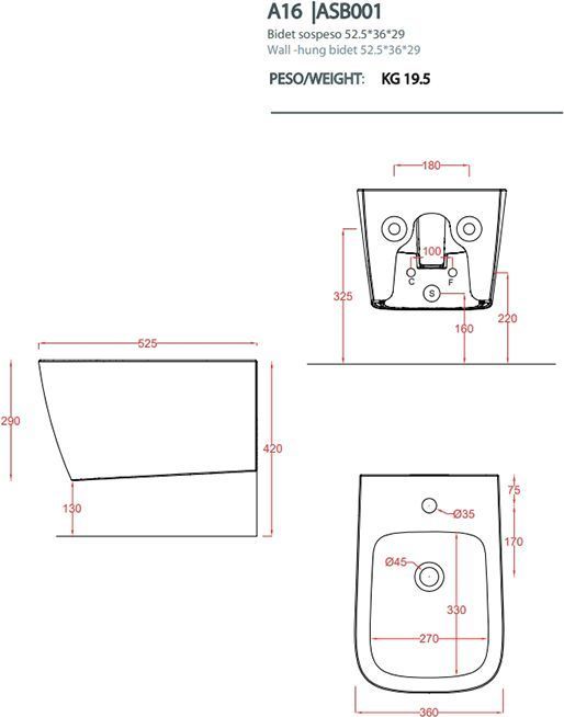 Характеристики биде подвесное ArtCeram (ASB001 42 00)