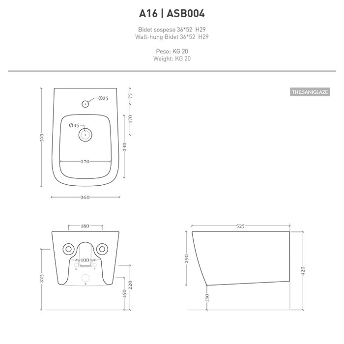 Биде подвесное ArtCeram A16 ASB004 01 00, цвет белый.