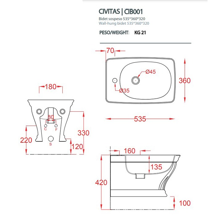 Биде подвесное ArtCeram Civitas CIB001 01 00