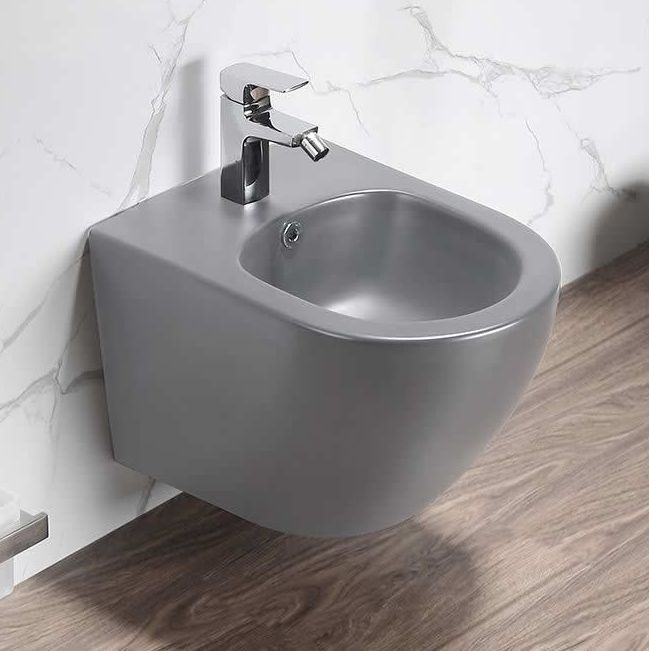 Биде подвесное CeramaLux 2342BDMH, скрытые крепления, цвет светло-серый матовый.