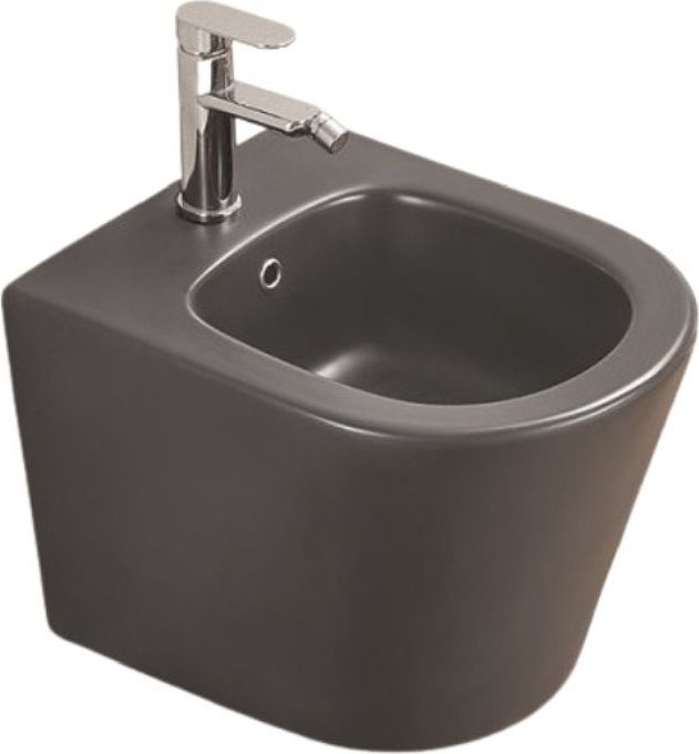 Биде подвесное CeramaLux 5330MDH с переливом, отверстием под смеситель, сливом-переливом и скрытыми креплениями, цвет серый.