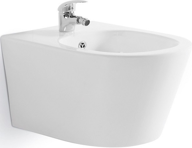 Биде подвесное CeramaLux NS-5378, с переливом, отверстием под смеситель, сливом-переливом, скрытыми креплениями, цвет белый.