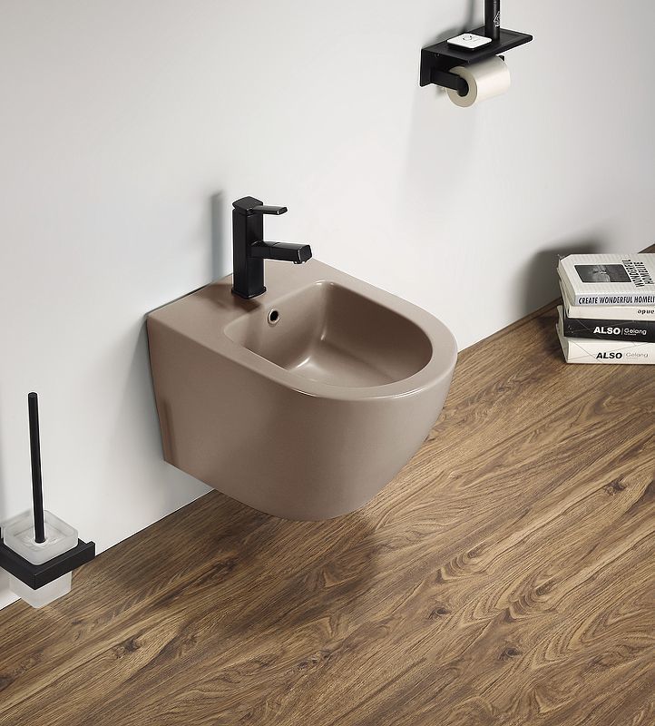 Биде подвесное CeramaLux В2342BDMC со скрытыми креплениями, цвет капучино.