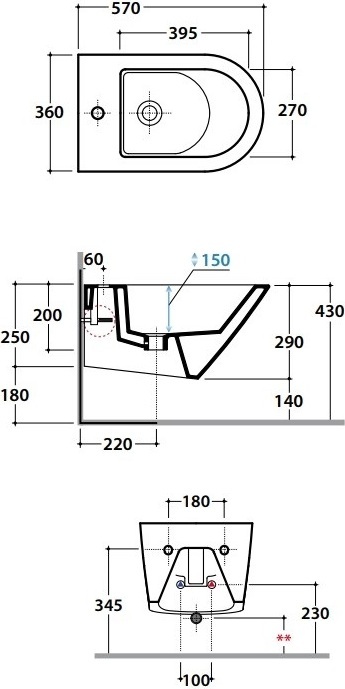 Биде подвесное Globo Forty3 FOS09.BI*1, глубина 570 мм
