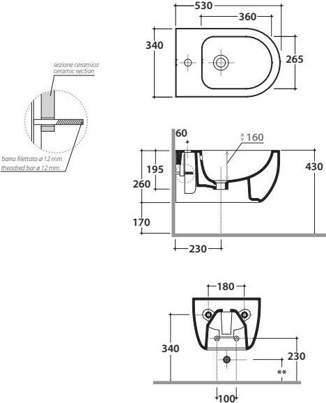 Биде подвесное Globo Mode MES09BI*1 с отверстием под смеситель, цвет - белый.