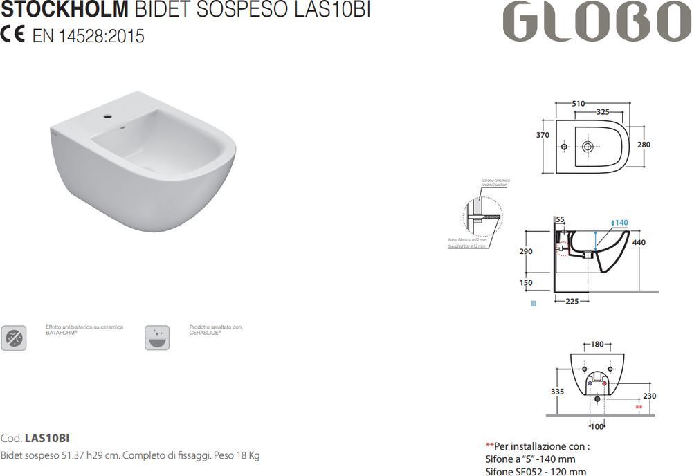 Описание биде подвесное Globo LAS10.BI*1