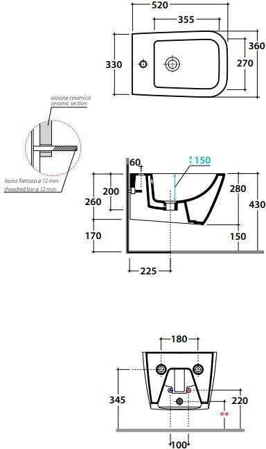 Характеристики биде подвесное Globo (STS10.AR*1)