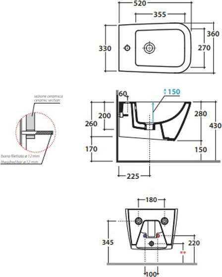 Характеристики биде подвесное Globo (STS10.BI*1)