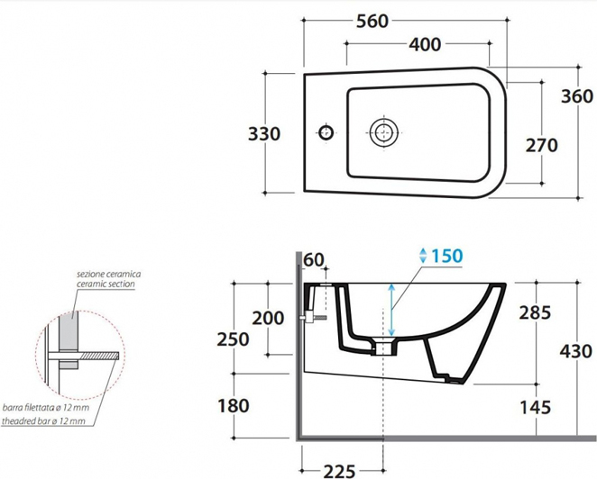 Описание биде подвесное Globo STS09.BI*1