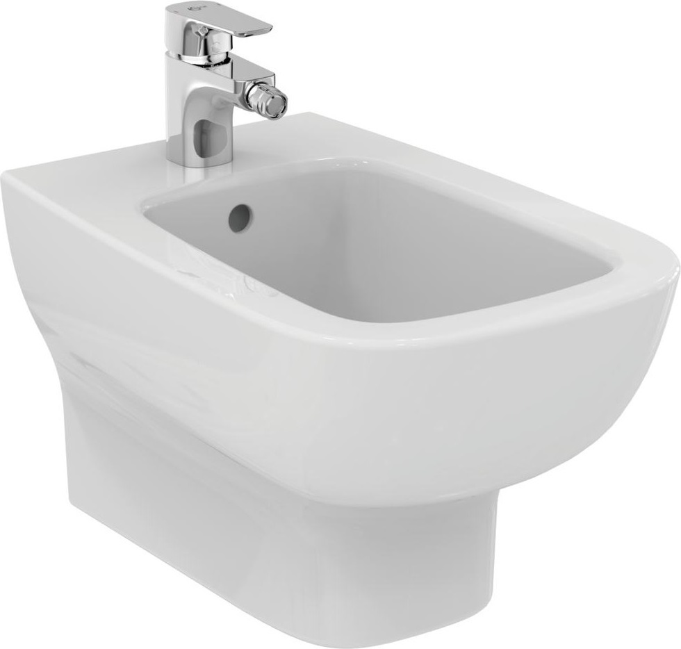 Биде подвесное Ideal Standard Esedra T281501, с отверстием под смеситель и крепежом TT0299598, цвет белый.