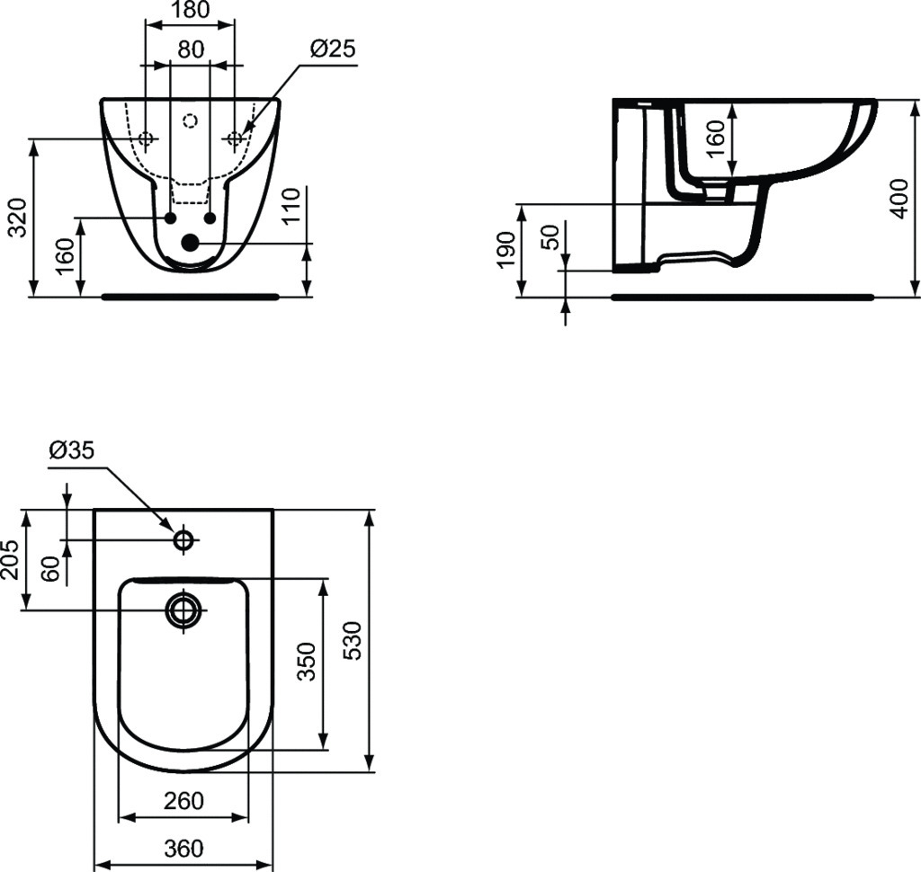 Биде подвесное Ideal Standard Tempo T510001, с отверстием под смеситель, цвет белый.