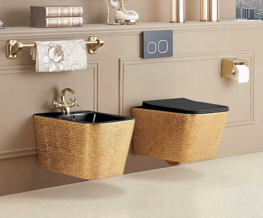 Биде подвесное Vincea Q-Line VB1-12G1B, цвет золото/черный.