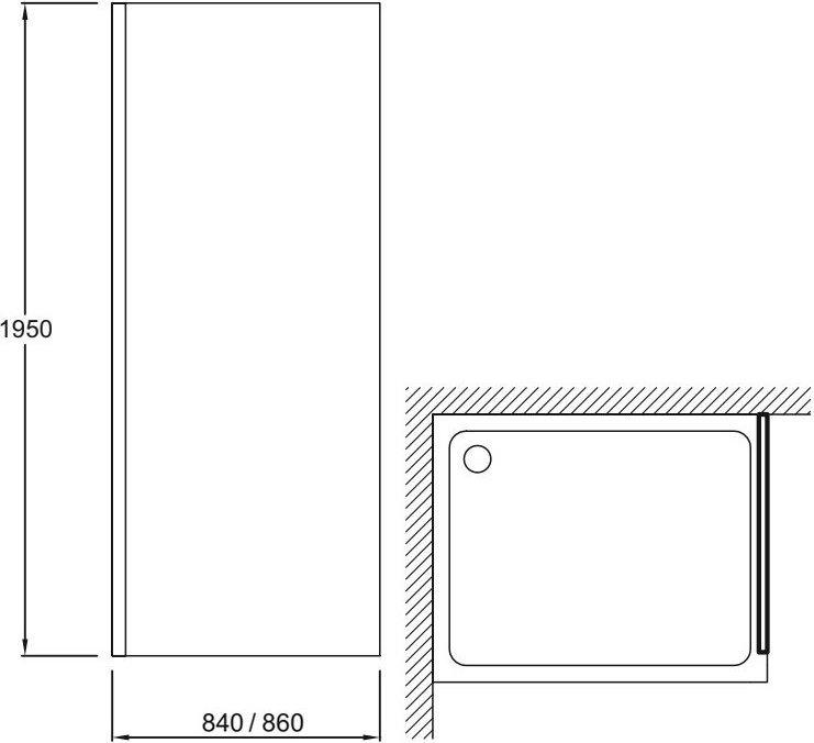 Боковая стенка Jacob Delafon Contra E22FC90-BL 900х1950 мм, профиль черный, стекло прозрачное, 8 мм.