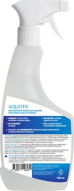 Чистящее средство от известкового налета, ржавчины для ванной, сантехники и смесителей Aquatek AQ9001, 500 мл.