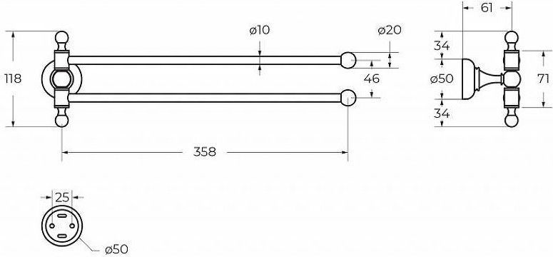 Держатель для полотенца Cezares 39 см APHRODITE-TD09-01-M