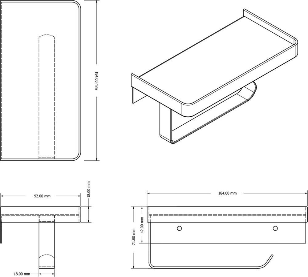 Держатель для туалетной бумаги Azario Altre с полкой для телефона, материал нержавеющая сталь, цвет чёрный матовый.