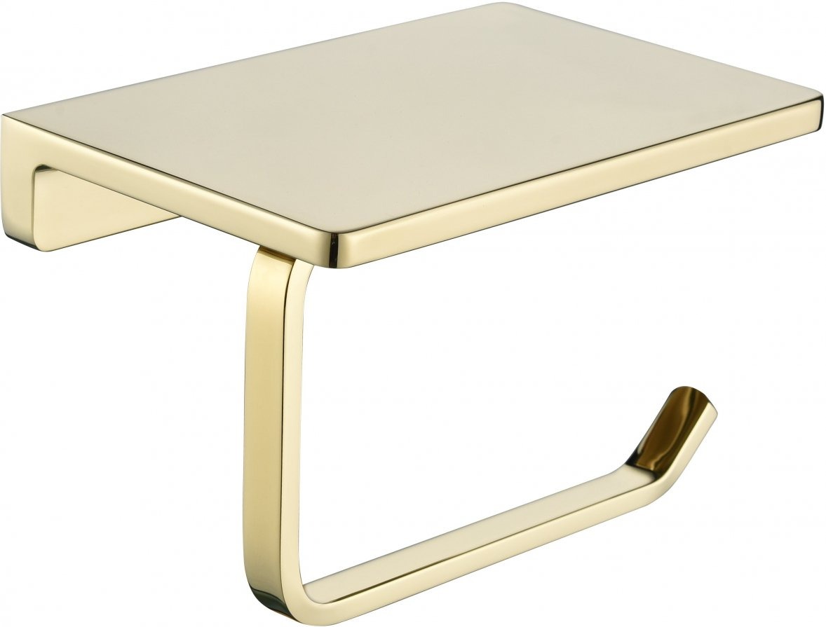 Держатель для туалетной бумаги Grocenberg AC0027GO с полкой для телефона, материал латунь, цвет золото.