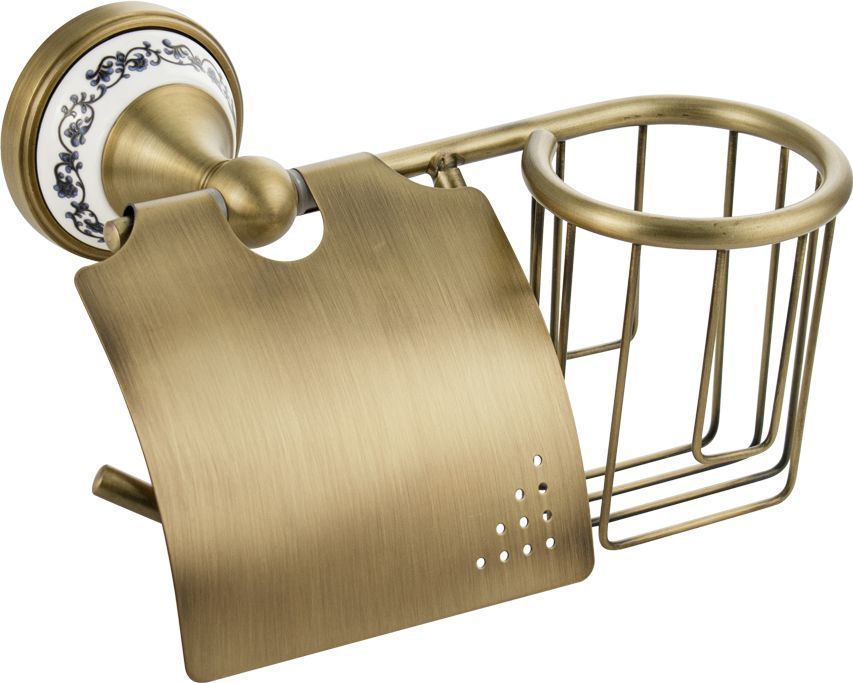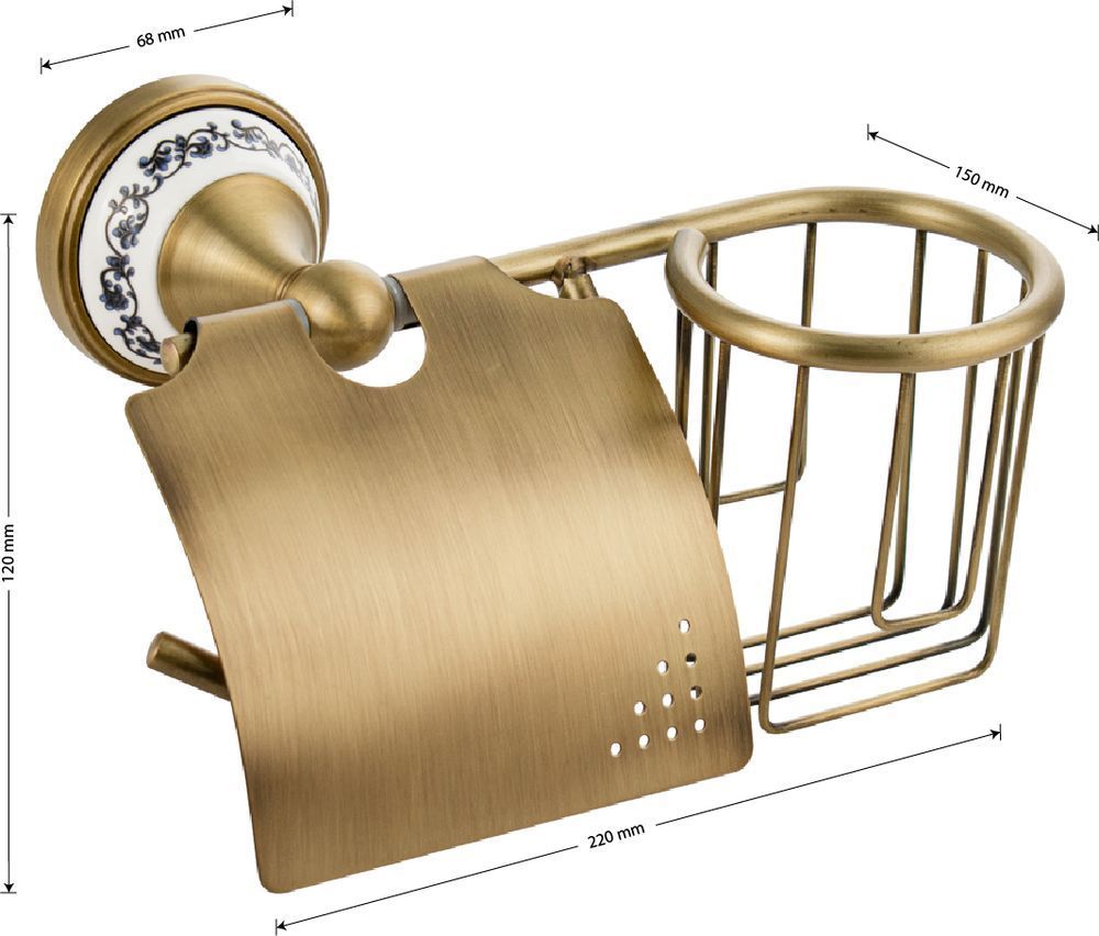 Держатель освежителя воздуха и туалетной бумаги с крышкой, металлический, с керамической вставкой с орнаментом, стильный и функциональный элемент санузла. Благодаря наличию крышки рулон будет защищен от попадания воды. Держатель легко и удобно крепится к стене при помощи фурнитуры входящей в комплект поставки. Материал изготовления — ЦАМ. Имеет специальное бронзовое, матовое покрытие, которое защищает изделие от влаги и придает ему безупречный стильный вид и долговечность. Удобно чистить и легко менять рулоны и аэрозоли. Габаритные размеры: ширина 220 мм, высота 120 мм, основание 68 мм. Вес - 0,73 кг, объём - 0,0055 м3
