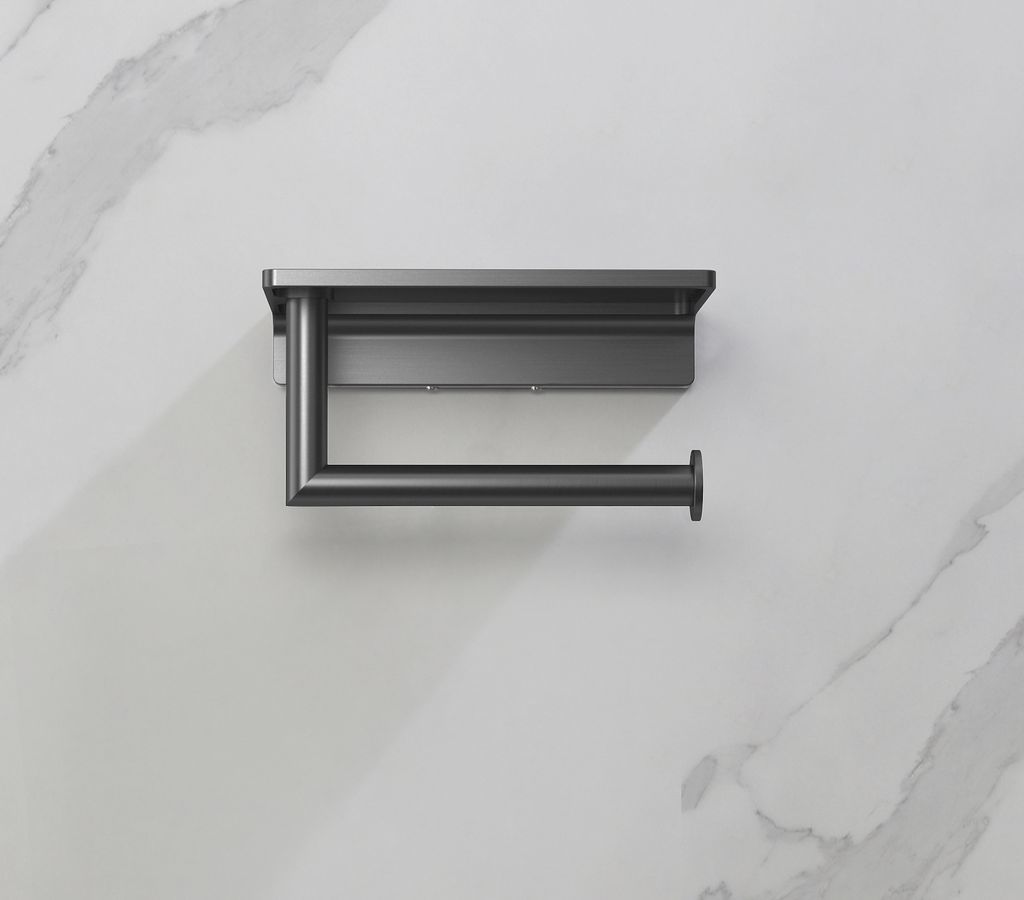Держатель для туалетной бумаги Timo Selene 13043/18 с полкой для телефона, материал латунь, цвет чёрное золото.