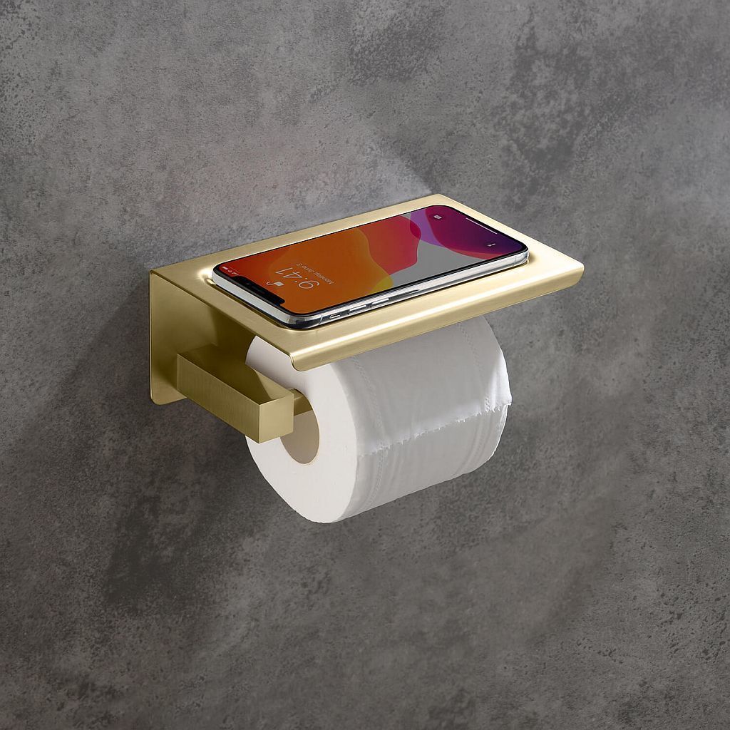 Держатель для туалетной бумаги Timo Selene 17044/17 с полкой для телефона, материал латунь, цвет золото матовое.