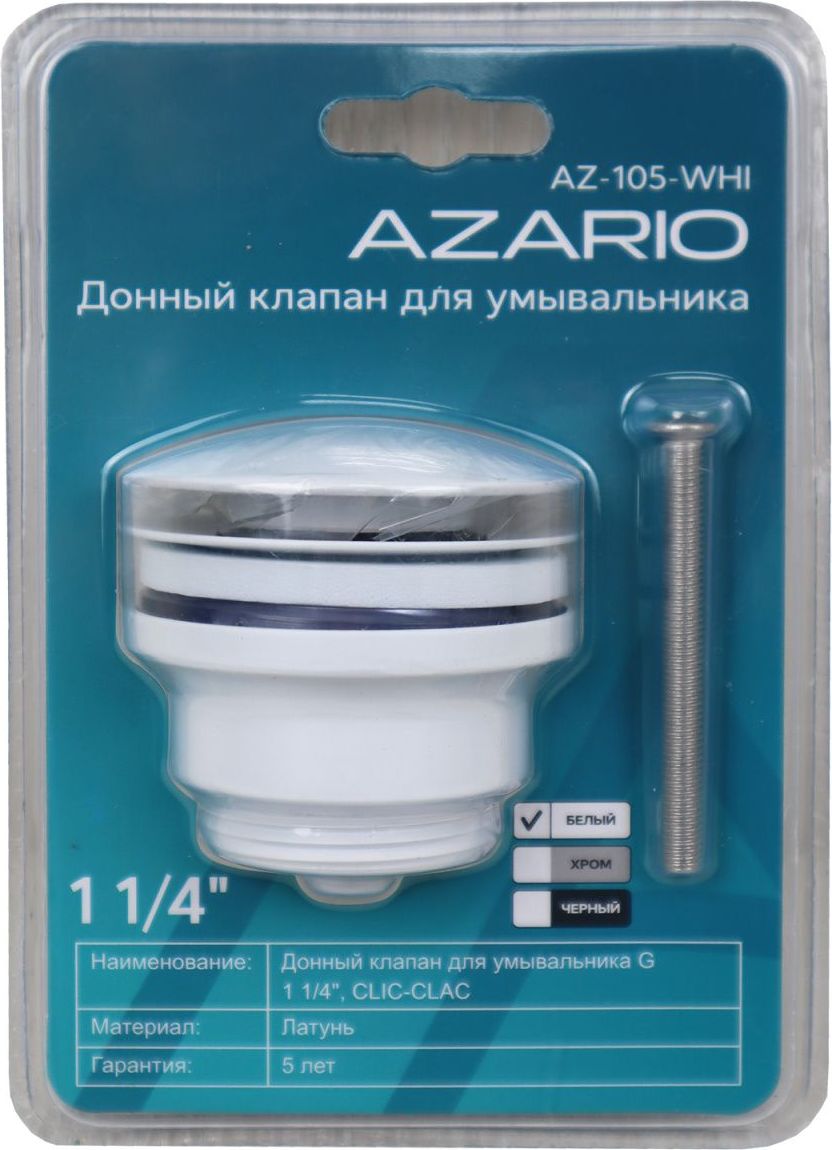 Донный клапан Azario AZ-105-WHI, белый
