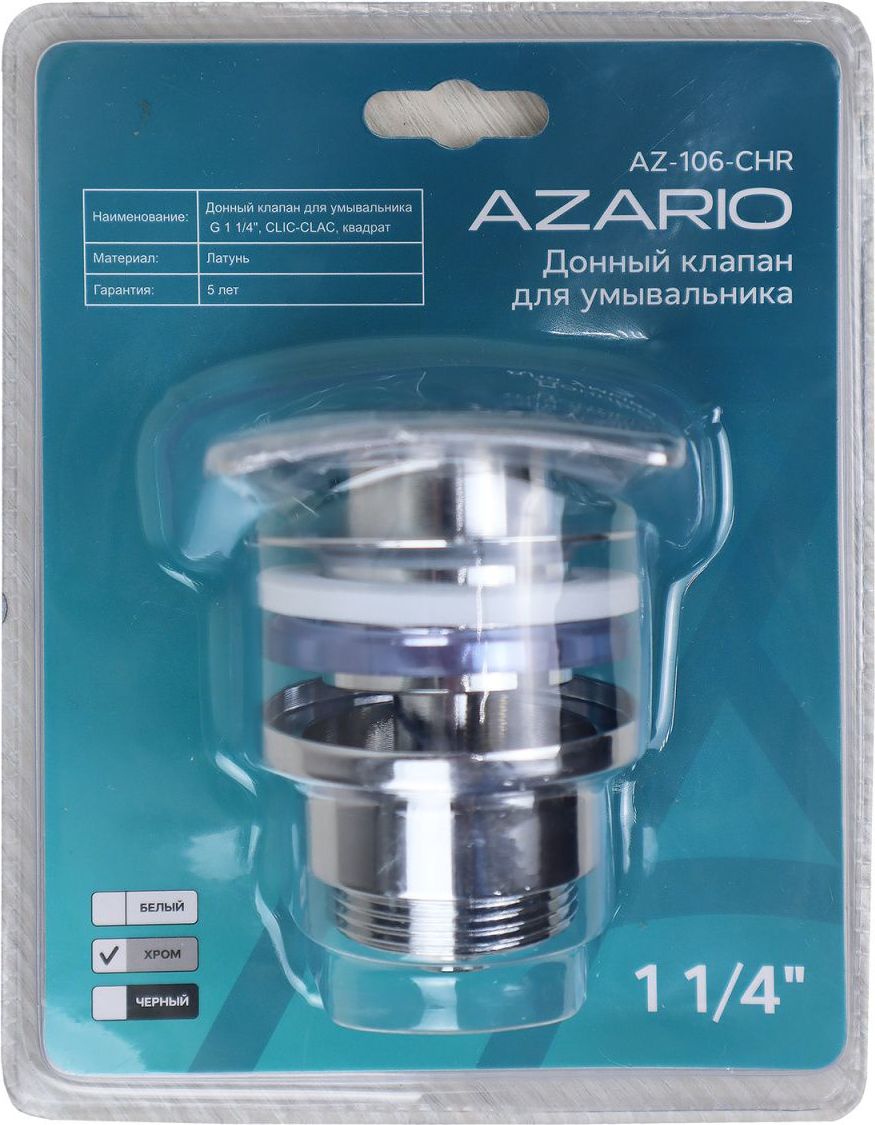 Донный клапан Azario AZ-106-CHR, материал латунь, цвет хром.