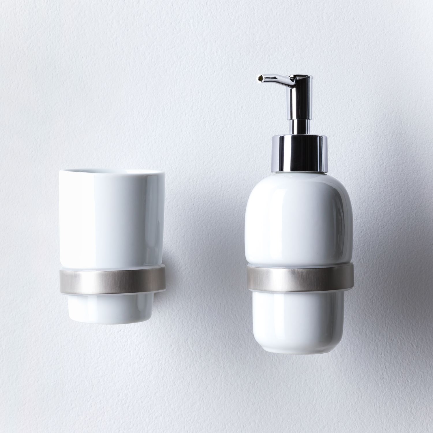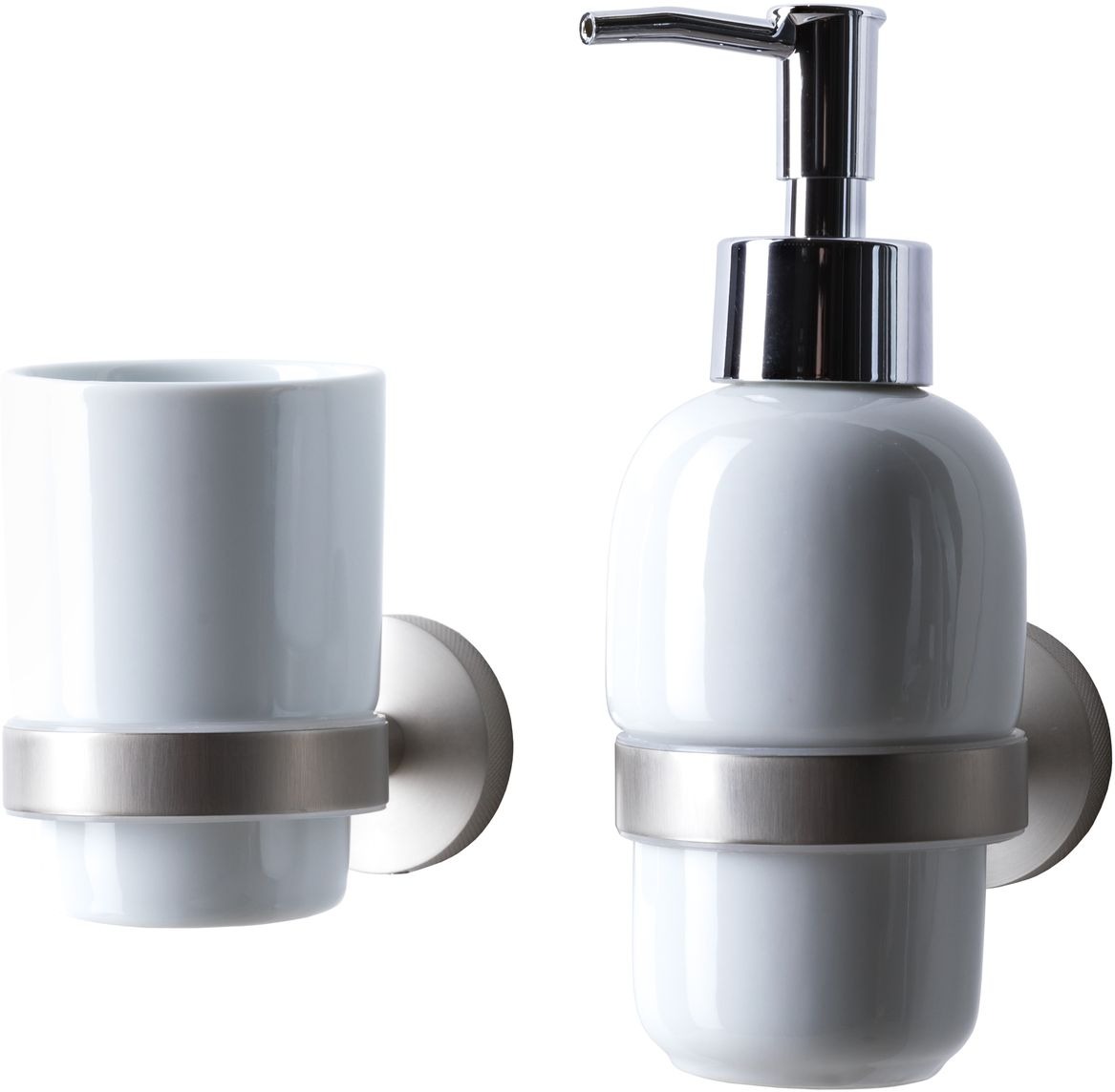 Дозатор для жидкого мыла Allen Brau Priority 6.31006-BN, материал латунь/керамика, цвет белый/никель брашированный.