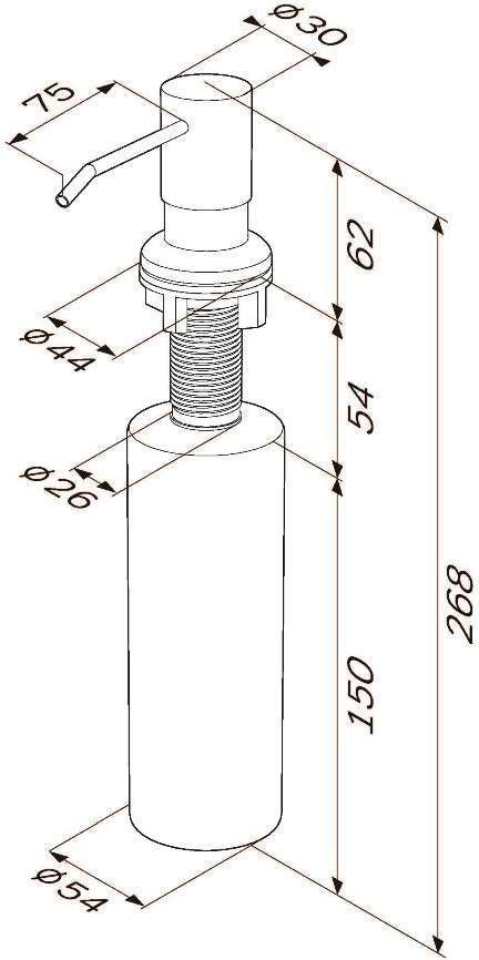 Встраиваемые универсальные диспенсеры помогут поддерживать красивый внешний вид кухни или ванной комнаты. Это незаменимый аксессуар который выполняет несколько функций. Во-первых экономия расхода моющего средства или жидкого мыла. Во-вторых избавляет от визуального шума. Диспенсеры произведены из нержавеющей стали устойчивой к коррозии. Плавный ход механизма помпы гарантирует приятное взаимодействие с продуктом. Длина носика составляет 75мм поэтому будет удобна для использования на любом типе и размере раковины.