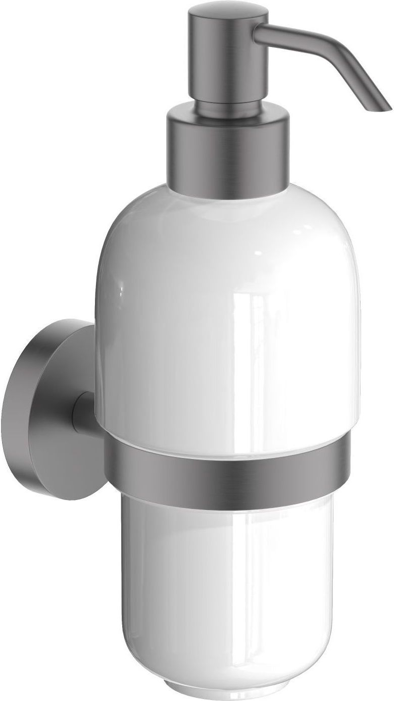 Дозатор для жидкого мыла Aquatek Бетта AQ4605BGM с настенным держателем, материал латунь/нержавеющая сталь/керамика/абс пластик, цвет оружейная сталь.