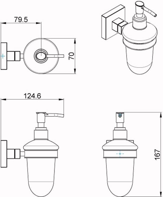 Дозатор для жидкого мыла Azario Rina AZ-87012 с настенным держателем, материал нержавеющая сталь/стекло, цвет хром.