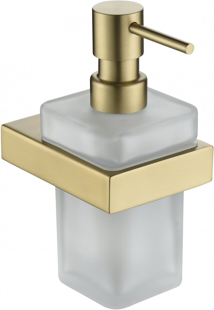 Дозатор для жидкого мыла Grocenberg AC0028MG с настенным держателем, материал латунь/стекло, цвет матовое золото.