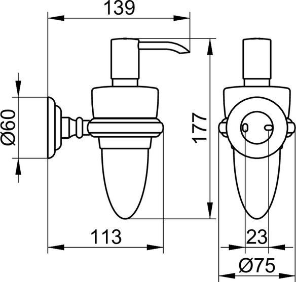 Дозатор для жидкого мыла Keuco Astor с настенным держателем, материал латунь/стекло, объем 160 мл, цвет хром.