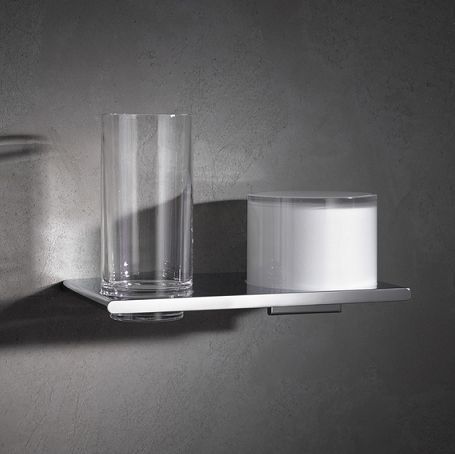 Дозатор для жидкого мыла со стаканом Keuco Edition с настенным держателем, материал латунь/стекло, объем 150 мл, цвет хром.